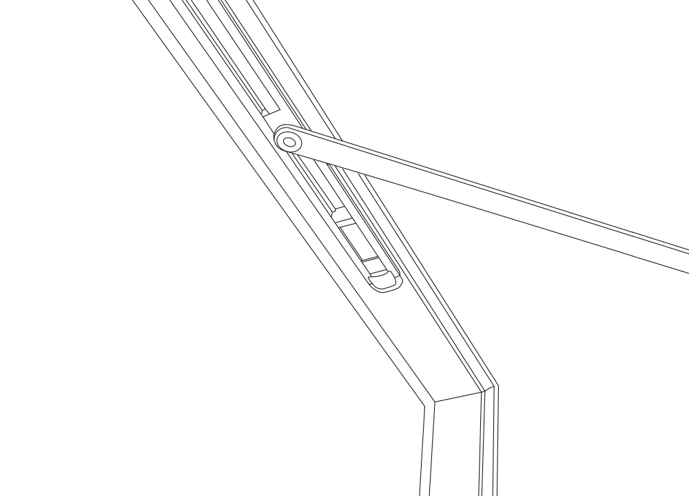 Mechanizm samozamykacza jest zagłębiony w panelu drzwiowym, natomiast ramię do otwierania w górnej poprzeczce ościeżnicy aluminiowej. Działanie urządzenia umożliwia: