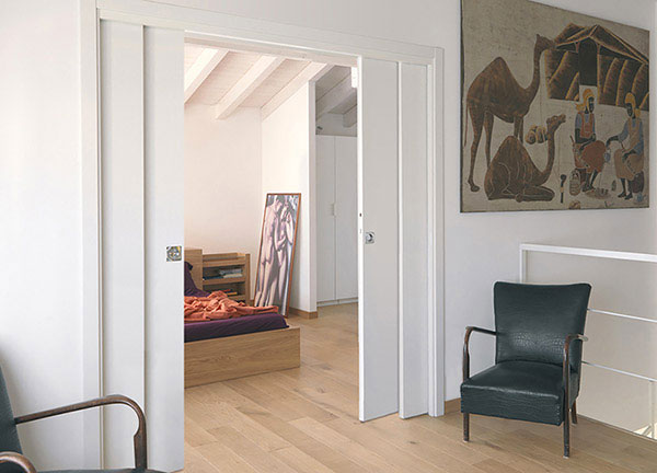 Umożliwia podział jednego pomieszczenia na dwa mniejsze z możliwością zachowania dogodnie szerokiego przejścia. Przy rozsuniętych drzwiach możemy uzyskać efekt jednolitej przestrzeni.