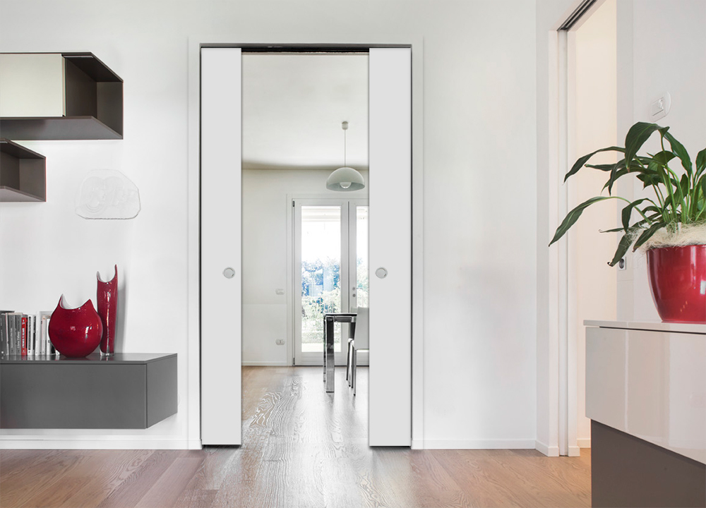 È un accessorio universale che permette di ottenere un controtelaio ad anta doppia utilizzandone due per anta singola.