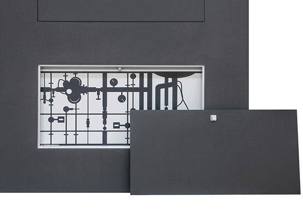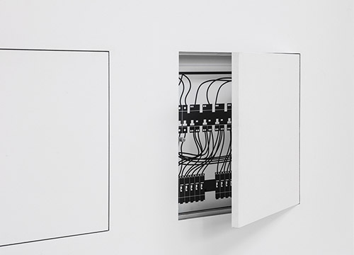 Syntesis Tech wyposażone jest w drzwiczki wykonane z płyty wiórowej gr. 18 mm pokrytej białą melaminą. Krawędzie drzwiczek wykończone są białym ABS. Całość można malować farbą akrylową.