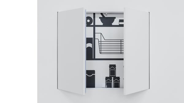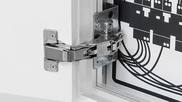 Swobodny dostęp do wnętrza szafki dzięki zawiasom o kącie rozwarcia do 165°. Regulacja zawiasów w trzech poziomach.
